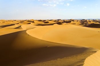 Moroccan legend says that the Erg Chebbi sand dunes were sent by God as a punishment for turning away a weary traveler from the desert. Moroccans believe that the dunes piled up outside Merzouga to teach them a lesson so that they would never refuse to help tired travelers ever again. The Erg Chebbi dunes at Merzouga are indisputably one of the greatest sights of Morocco. These giant hills of smooth sand line the Algerian border and are a must see for everyone.Today, arriving to must-see Chebbi dunes of Merzouga is a breeze in comparison to decades prior; there are many options to take you there. The easiest way is by 4×4 land cruiser however for those who have time to explore the Sahara, camel trekking is also popular. The best way to travel is with a guide. If you choose to do so, you will be in expert hands and have the opportunity to cruise the dunes and areas surrounding them. When trekking by camel, you must allow a minimum of two weeks.
